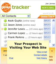 - Load a list of prospect email addresses and send an email (this can be done as individual users, or marketing can send on behalf of sales teams)- Launch the Tracker (which is a web-based client like Yahoo Instant Messenger but instead of showing your buddies you see your prospects), and see visitors show up live after they have clicked through the email